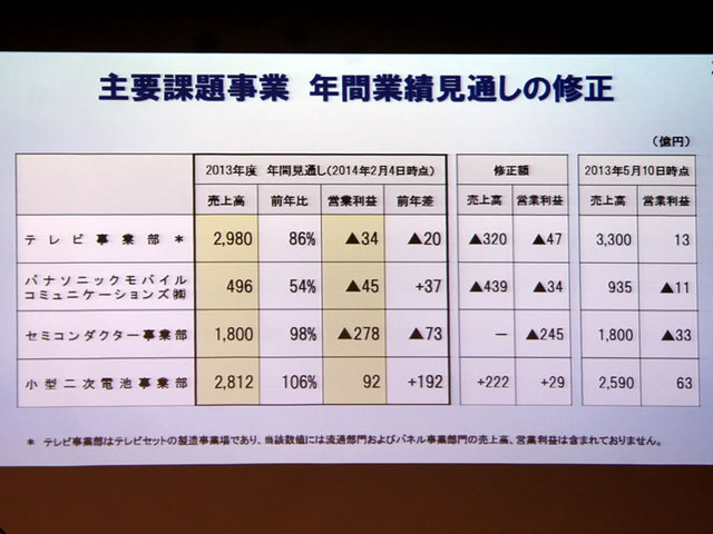 テレビ事業部を含む主要課題事業の年間業績見通し
