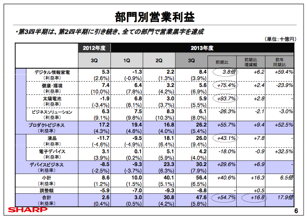 シャープ、'13年度1Q決算発表 − 液晶テレビ/IGZOスマホが売上伸長