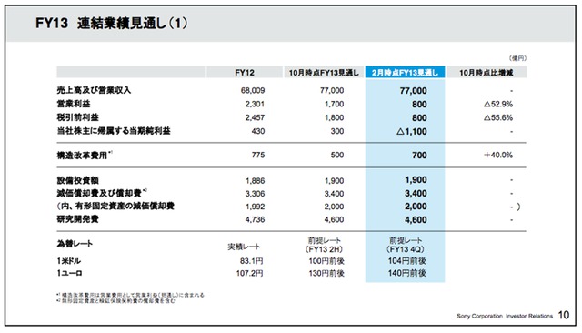 - ソニー、'12年度は純利益430億円 − 5期ぶり黒字、昨年度から大幅改善 2013/05/09