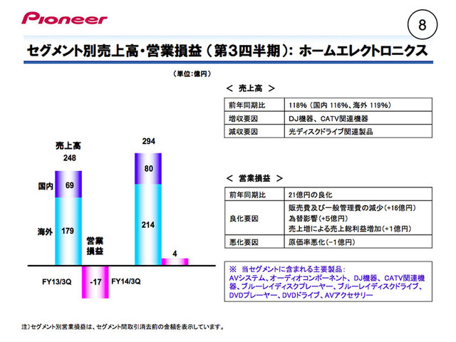 パイオニア、'13年度3Qは営業利益黒字化達成 − 売上高も前年同期比120%に
