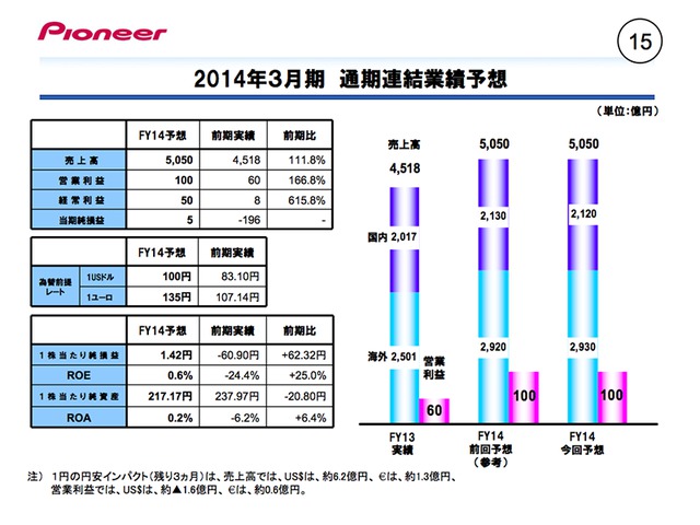 パイオニア、'13年度3Qは営業利益黒字化達成 − 売上高も前年同期比120%に