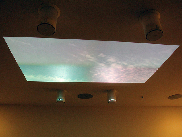 リビングの天井には、4つのプロジェクターを使用して、横1.6m×縦90cmの映像を投影