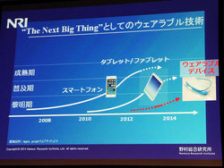 スピーチでは98年に開催したイベントで呈示したウェエラブル端末のイメージ写真も紹介。当時の記事で既にメガネ型や腕時計型など現在に通じるキーワードが指摘されていたという