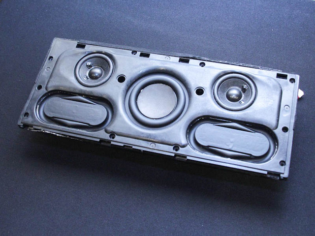 SRS-X7のユニット部。左右の楕円形がパッシブラジエーターだ