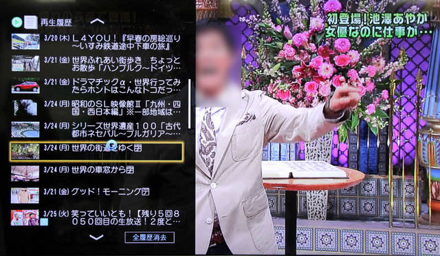 画面左のメニューから「再生履歴」を表示したところ