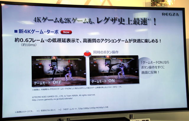 約0.6フレーム(約10ms)の低遅延表示が可能な「新4Kゲーム・ターボ」機能を備えている
