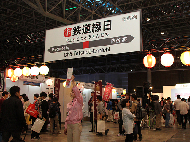 向谷実による「超鉄道縁日」ブース。鉄道関連放送やグッズが並んでいた