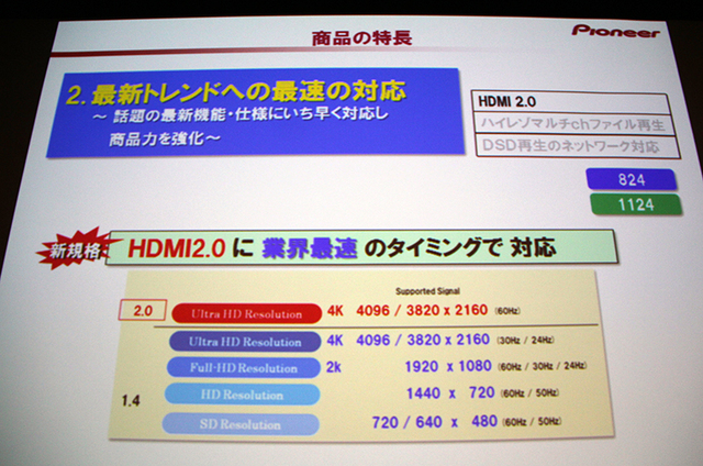 VSA-1124/824ともにHDMI2.0に対応。4K/60p、4:4:4/24bitにフル対応する