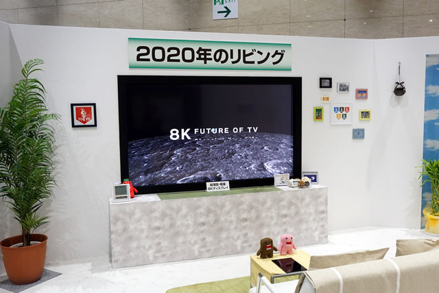 「2020年のリビング」とした展示も。壁掛けテレビは8K対応で、手元にはハイブリッドキャストなどで使うタブレットが置かれている