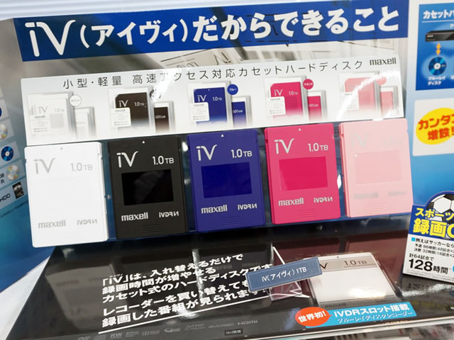 昨日発表された日立マクセルのiVDRカセットなど会場には各社の対応製品が並ぶ