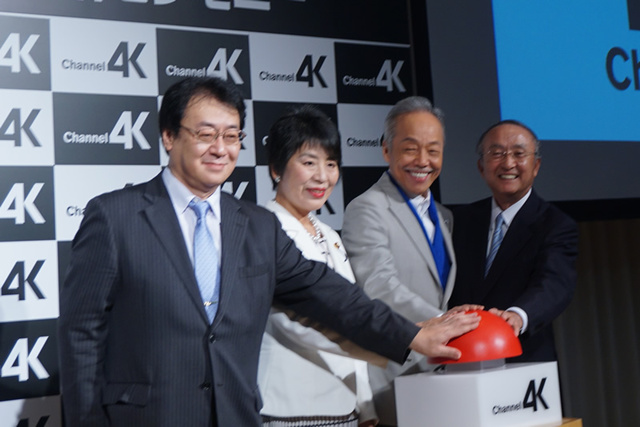 13時からの4K試験放送開始直前には関係者が集まりカウントダウン