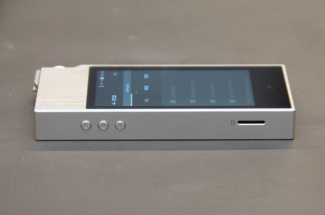 AK120IIの側面部。ボリュームボタンとmicroSDスロット1系統を備える。底面にはUSB microB端子を用意