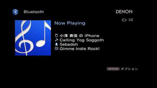 Bluetooth再生時のオンスクリーン画面
