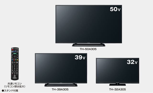 HOME > ニュース > AV&ホームシアターニュース 50型/39型/32型の3サイズ パナソニック、狭ベゼル/USB-HDD録画対応の液晶テレビ“VIERA”「A305シリーズ」 ファイル・ウェブ編集部 2014年06月26日 A305シリーズ この写真の記事へ 関連リンク 製品の詳細 VIERA 公式サイト