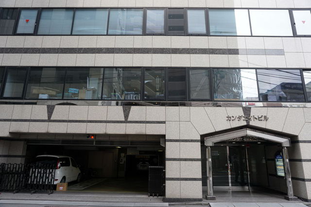 カンダエイトビルの入り口は中央通りの反対側