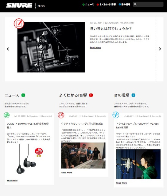 HOME > ニュース > AV&ホームシアターニュース ブランド最新情報など公開中 SHURE、日本公式ブログをスタート ファイル・ウェブ編集部 2014年07月29日 ブログのトップ画面 この写真の記事へ 関連リンク Shure Japan Blog Shure Japan