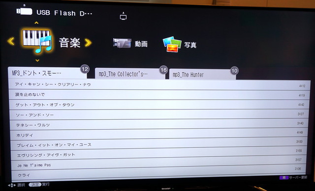 同じくコンテンツマネージャーで音楽のリストを表示したところ