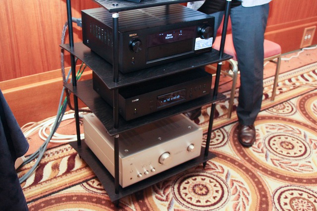 プリメインアンプ「PMA-2000RE」をトップリアスピーカー用に追加した5.1.4構成などでデモを行った