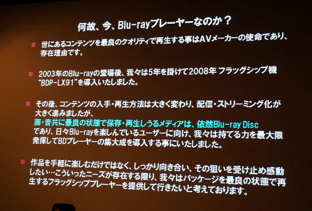 BDを最良の状態で再生できるフラグシッププレーヤー開発に至ったと説明した