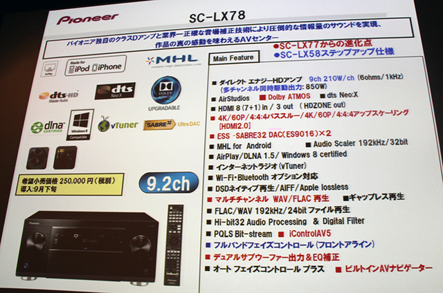 パイオニア「SC-LX87/LX77/LX57」3機種が4K/60p対応アップデート