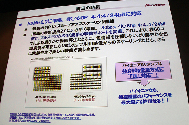 HDMI2.0にも対応し、4K/60p/4:4:4の伝送が可能。なおHDCP2.2には非対応