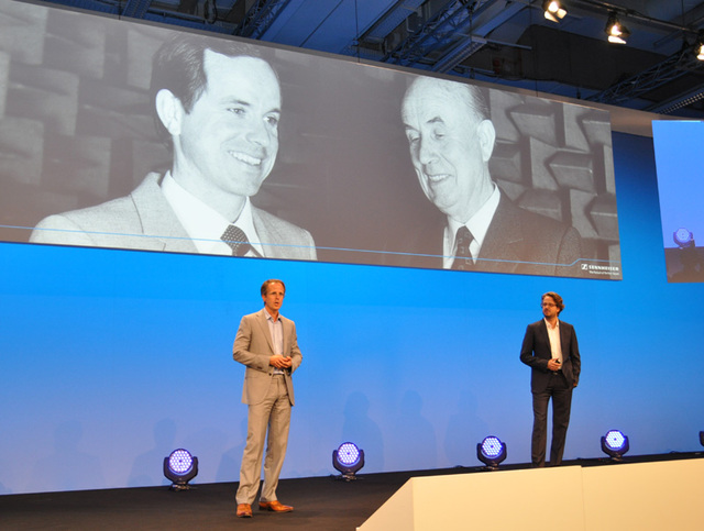 ゼンハイザーの創立者であるフリッツ・ゼンハイザー氏(写真右)と、2代目のヤルグ・ゼンハイザー氏(左)