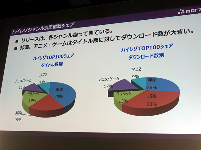 各ジャンルでハイレゾコンテンツが揃ってきているというデータも紹介