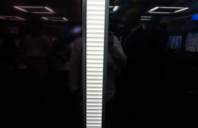 消灯時のパネルを撮影したところ。左がN-Blackパネル、右がグレアパネル。右の方が映り込みが多いことがわかる