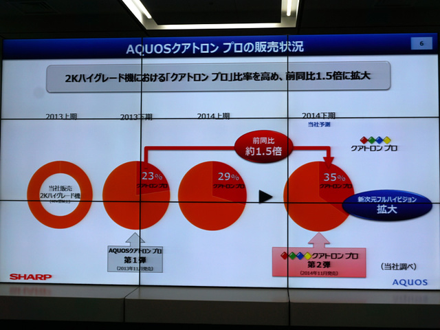 HOME > ニュース > AV&ホームシアターニュース 「2Kだけど4Kも見られるという将来性がある」 「“2Kハイグレードゾーン”は十分な市場がある」 − シャープ「AQUOS XL20」発表会詳報 ファイル・ウェブ編集部 2014年10月02日 次の写真へ 新製品の投入で「クワトロン プロ」の販売比率をさらに高める狙い 次の写真へ この写真の記事へ 関連リンク AQUOS 製品情報ページ シャープ