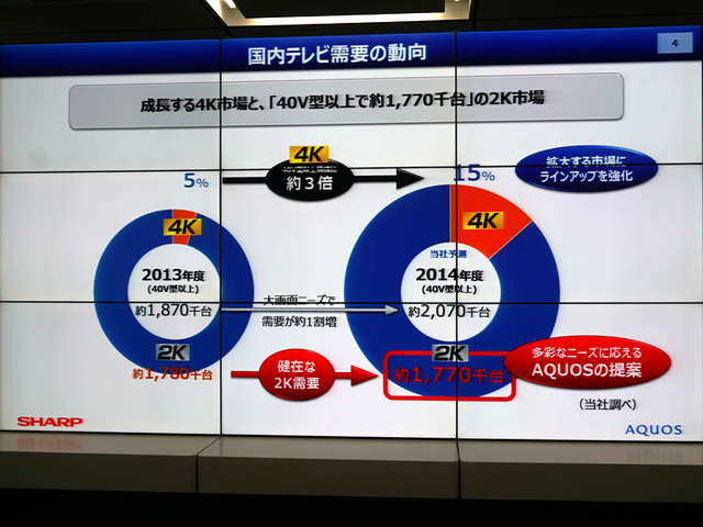 40型以上の市場では4Kモデルの構成比が伸びるが2Kの需要もまだ多いと説明