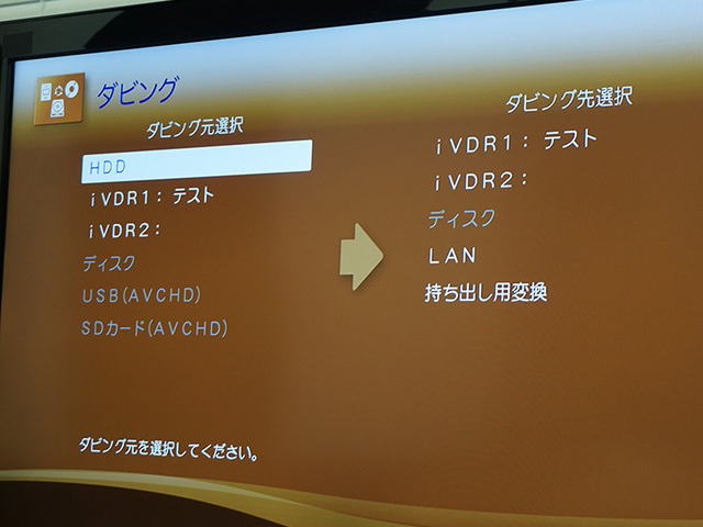 ダビング機能のメニュー。iVDRカセットに任意の名前をつけておくこともできる