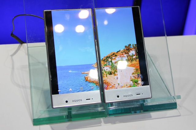 「AQUOS CRYSTAL」を2台用いての“SWIPE PAIR”機能も披露