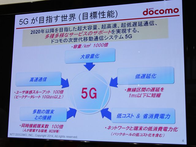 HOME > ニュース > AV&ホームシアターニュース ポータブルSIMなども <CEATEC>ドコモ、次世代5G通信&ウェアラブルなど“少し先の未来”体感デモ ファイル・ウェブ編集部 2014年10月08日 前の写真へ 次の写真へ 5Gの目標性能 前の写真へ 次の写真へ この写真の記事へ 関連リンク CEATEC JAPAN 2014関連記事一覧 CEATEC JAPAN 2014公式サイト