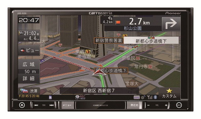 HOME > ニュース > AV&ホームシアターニュース 楽ナビ9機種は新開発DSPによりAV機能も強化 パイオニア、新GUIを搭載した「楽ナビ」9機種、エアジェスチャー対応のポータブル型「楽ナビ」3機種機種 ファイル・ウェブ編集部 2014年10月08日 次の写真へ AVIC-RZ09 次の写真へ この写真の記事へ 関連リンク 「楽ナビ」のニュースリリース ポータブルタイプ「楽ナビ」のニュースリリース ドライブレコーダー「ND-DVR1」のニュースリリース パイオニア