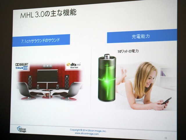 HOME > ニュース > AV&ホームシアターニュース Silicon Image、CEATECでプライベートショウ開催 「MHL」急成長、対応製品が6億5千万台突破 − 4Kテレビ伸長は中国市場が牽引 ファイル・ウェブ編集部 2014年10月10日 前の写真へ 次の写真へ オーディオは7.1chサラウンドまで対応。充電能力も10Wまで対応している 前の写真へ 次の写真へ この写真の記事へ 関連リンク CEATEC JAPAN 2014関連記事一覧 CEATEC JAPAN 2014公式サイト