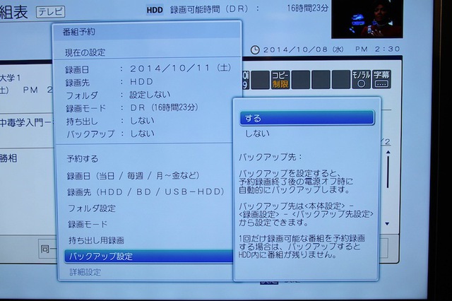 番組予約時にバックアップを設定すれば、録画終了後に自動的にバックアップされる