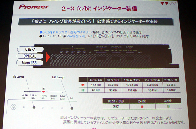 再生中の周波数/ビットレートが分かるインジケーターも搭載。「ビット数まで表示するのはなかなか無いのでは」(林氏)