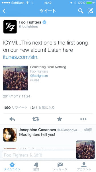 HOME > ニュース > AV&ホームシアターニュース モバイルアプリ向け「オーディオカード」 Twitter、iTunesなどの楽曲をTL上で直接再生できる新機能 ファイル・ウェブ編集部 2014年10月17日 前の写真へ 再生しながらタイムラインを閲覧することも可能。画面右下にカバーアートが表示されている 前の写真へ この写真の記事へ 関連リンク オーディオカードに関する公式ブログエントリー(1) オーディオカードに関する公式ブログエントリー(2)