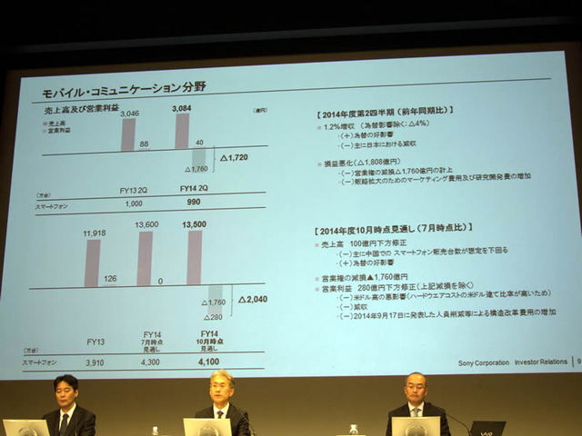 ソニー、'14年上半期はモバイル分野減損で最終赤字1,901億円