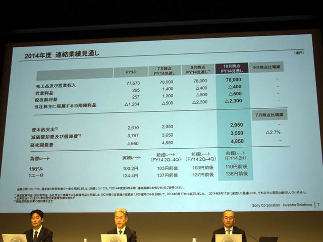 ソニー、'14年上半期はモバイル分野減損で最終赤字1,901億円