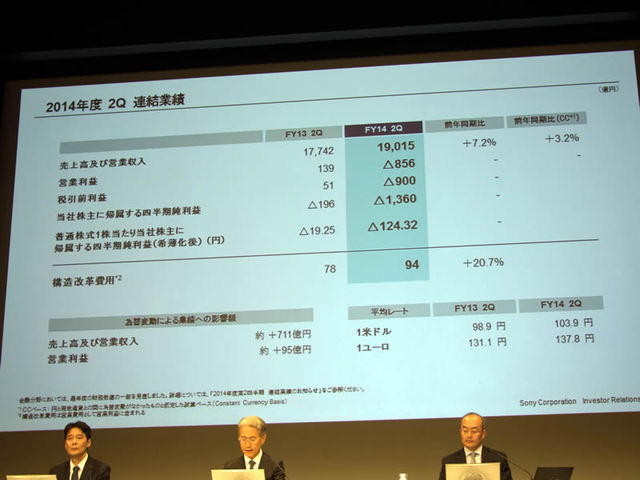 ソニー、'14年上半期はモバイル分野減損で最終赤字1,901億円