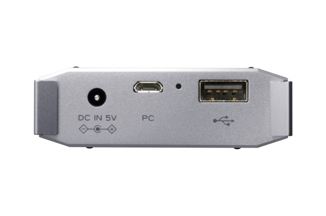 背面にはUSB microB端子とUSB 端子を装備。ACアダプターからの給電/充電にも対応
