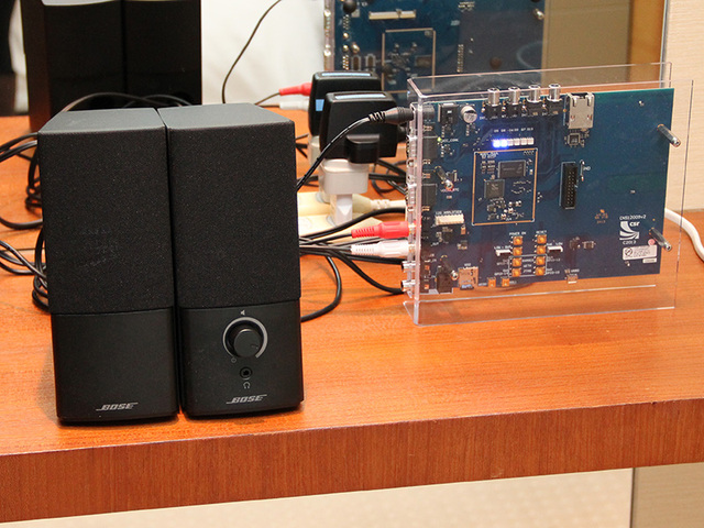 右がVibeHubモジュール。会場では複数の部屋に設置したVibeHub対応システムでデモを行った