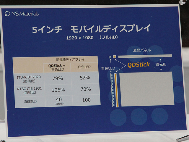 NSM、8K/4KテレビでBT.2020を100%カバーできる“量子ドット蛍光体”