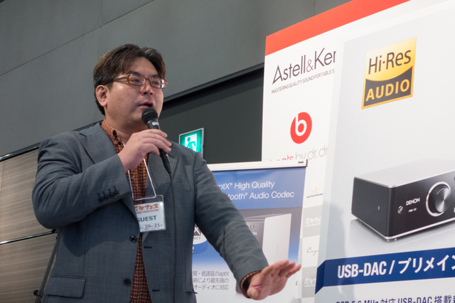 HOME > ニュース > AV&ホームシアターニュース AudioQuestは新ヘッドホンをアナウンス <ポタフェス>デノン、DDFA採用の小型プリメイン「PMA-50」の発表会を開催/マランツ、HD-DAC1をデモ ファイル・ウェブ編集部 小澤貴信 2014年12月20日 前の写真へ 次の写真へ 野村ケンジ氏 前の写真へ 次の写真へ この写真の記事へ 関連リンク PMA-50のニュースリリース デノン マランツ ポタフェス レポート記事一覧