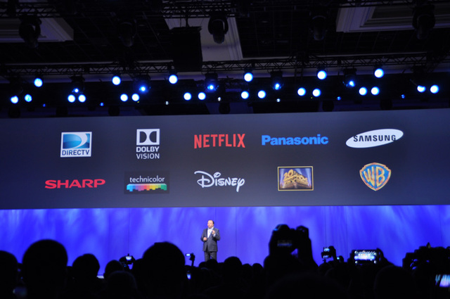 HOME > ニュース > AV&ホームシアターニュース オーディオ製品の強化も宣言 【CES】サムスン、次世代の4K体験を実現する「SUHD」テレビを発表 山本 敦 2015年01月06日 前の写真へ 「UHD Alliance」のメンバー企業 前の写真へ この写真の記事へ 関連リンク 2015 International CES 公式サイト Phile-web CES レポート記事一覧
