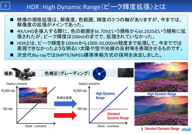 HOME > ニュース > AV&ホームシアターニュース 「Mr.ブルーレイ」パナソニック小塚氏に直撃 次世代BD「ULTRA HD BLU-RAY」規格の詳細をキーマンに聞く。4K/HDRで“究極高画質”へ 折原一也 2015年01月08日 前の写真へ 次の写真へ HDRの概要 前の写真へ 次の写真へ この写真の記事へ 関連リンク Phile-web CES レポート記事一覧 2015 international CES 公式サイト