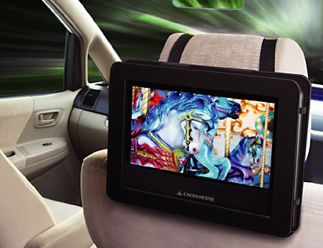 グリーンハウス、ポータブルBDプレーヤーの車載用ヘッドレスト取付けキット