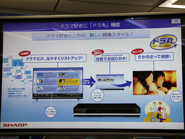 連ドラ/アニメ新番組をすべて自動録画、「ドラ丸」搭載の新AQUOSブルーレイ