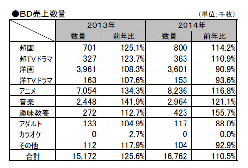 BD/DVDの2014年間売上トップは「アナ雪」− VOD等の影響で映像ソフト総販売数は減少